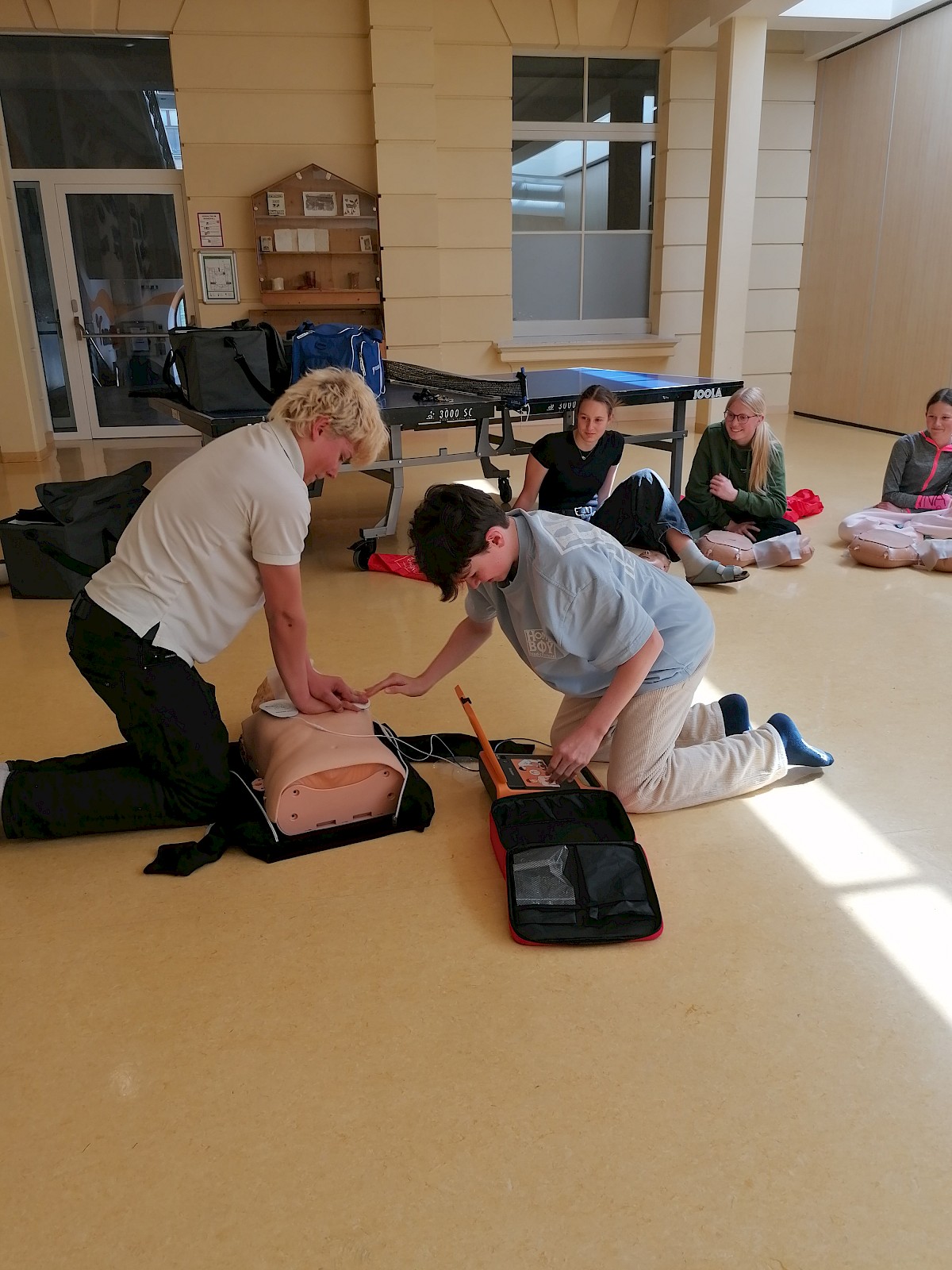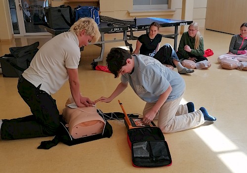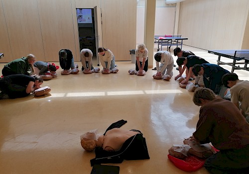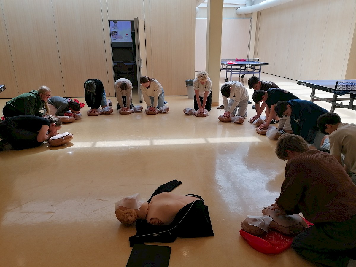 Schlussendlich stand ein Block Erste Hilfe an. Von einfachen Verbänden, die man immer im Alltag benötigen kann - gerade als Sportler*In, bis hin zum Erkennen von Schlaganfall, Herzinfarkt und der Durchführung einer Reanimation, wurde viel behandelt.