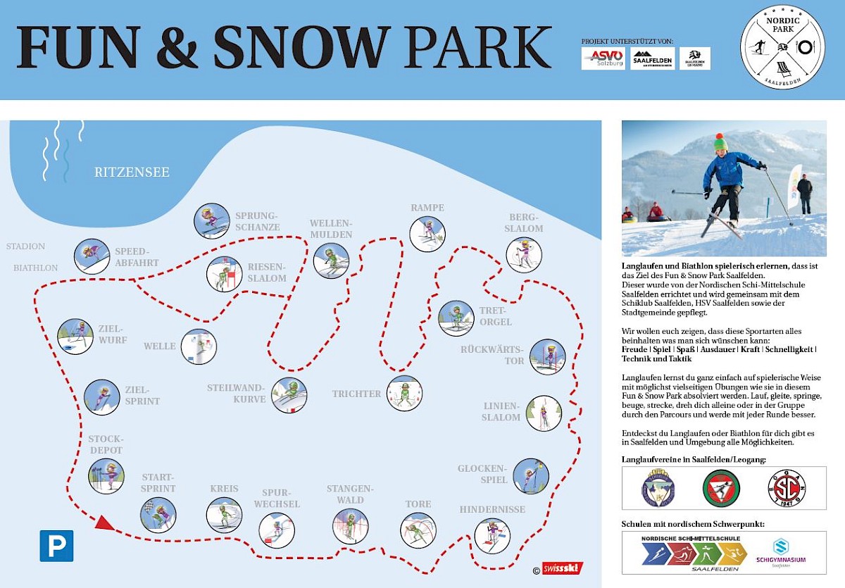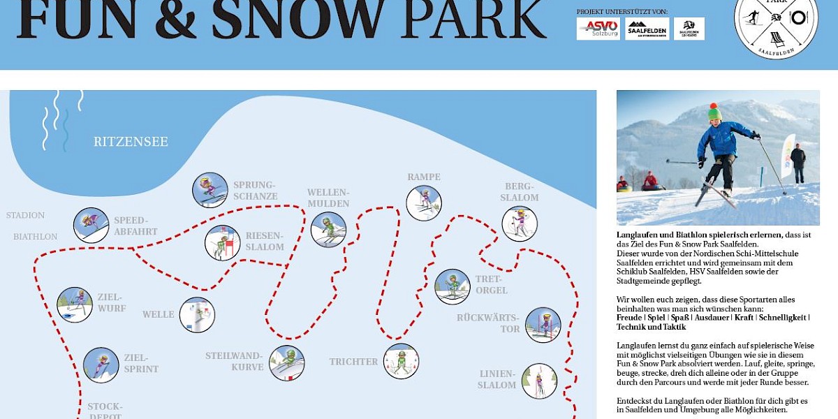 Langlaufen und Biathlon spielerisch erlernen das ist das Ziel des Fun & Snow Park Saalfelden. Er wurde von der Nordischen Schimittelschule Saalfelden im Jahr 2012 das erste Mal errichtet und im Jahr 2020 auf insgesamt 22 Stationen erweitert.